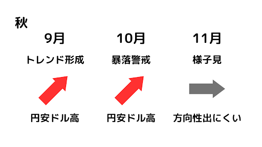 秋は大きなトレンドが発生しやすいアノマリーがあります。