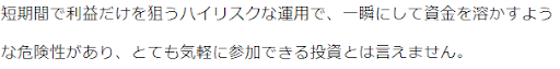 確かに、短期間で利益を狙うハイリスクな運用は一瞬にして資金を溶かす可能性もあります
