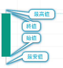 ローソク足を見るとき、4つのポイントに注目します。