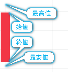 その4つのポイントは実体の上下の価格と、ヒゲの上下の価格です。