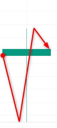 例えばこの陽線の中の値動きは、赤の矢印で示したようになっています。