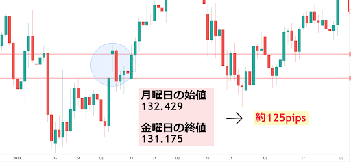 例えば、週末、金曜日にポジションを持ち越して、土日に何か大きな経済イベントなどがあって時に、その影響を受けて月曜日にギャップアップ、ギャップダウンなど大きな窓が発生した場合です。