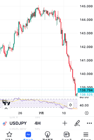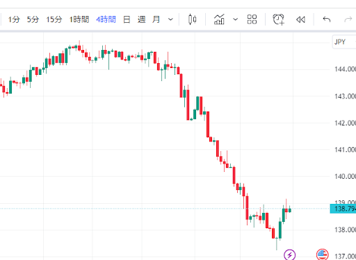 ①ドル円4時間足 で全体の流れを把握します。