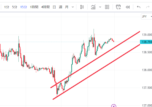 ②ドル円15分間足