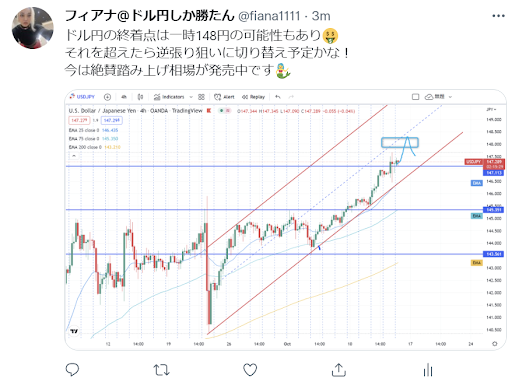 ツイートでも取り上げましたが、2022年のドル円上昇トレンドがあまりに強すぎたので、どこで終着点迎えるのかをチャート計算し、そこから逆張りシナリオを考えようという事例です