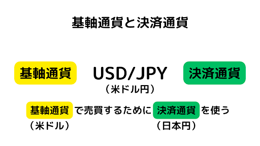 この2つは左側の基軸通貨を売買するために、右側の決済通貨を使うという関係性です。