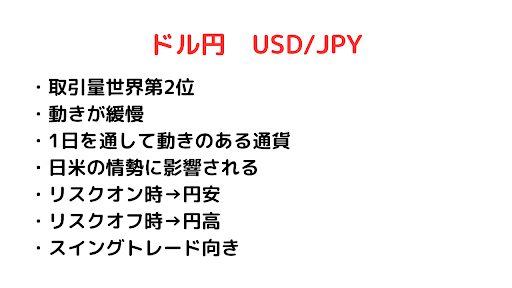 ドル円は取引量世界第2位の通貨ペアです。