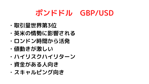 ユーロドルよりも値動きが激しいのが特徴です。