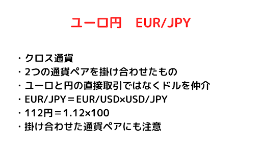 ユーロ円はクロス円と呼ばれる通貨ペアで