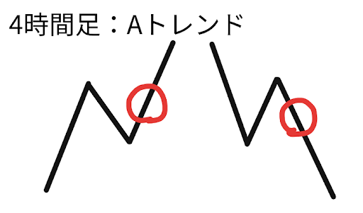 この4時間足でのトレンドを「Aトレンド」と呼ぶことにします