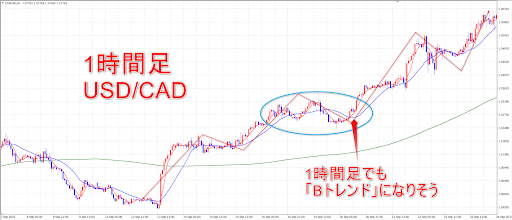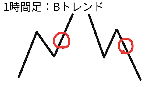 続いて1時間足のトレンドを「Bトレンド」と呼ぶことにします
