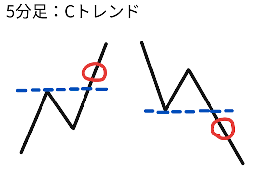 最後、もっとも細かい5分足を「Cトレンド」とします