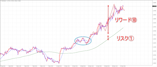 実際、今回の例ではその後もどんどん上がっていき、最終的にはリワード⑩を狙えるほどの大相場でした
