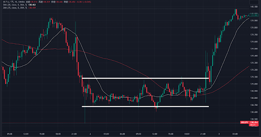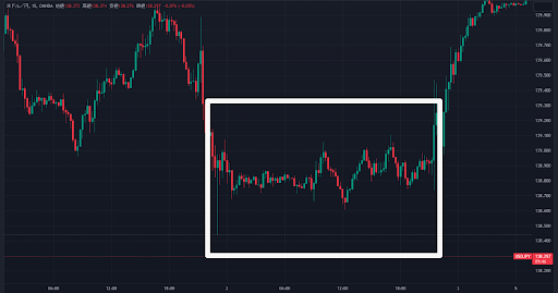 次は、最初にお見せしたレンジ相場のところでこの手法を試しに使ってみましょう。