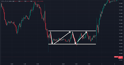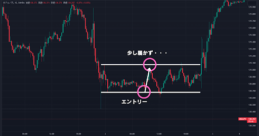 それは置いておいて、レンジ相場でのトレード例を見てみましょう。