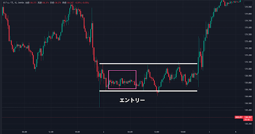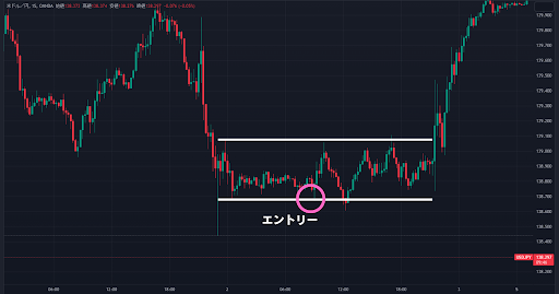 例えば、このレンジの下限でエントリーしたとします。