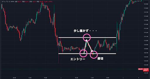で、損切のあと上限ラインまで戻るといった形になってしまいやすいです。