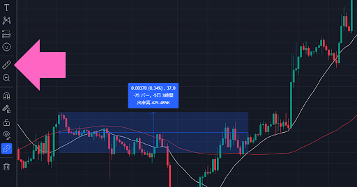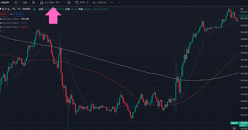 トレンドビューを使っている場合は、左上のインジケーターをクリックして、