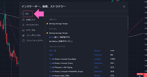 検索のところに「SMA」と入力しましょう。