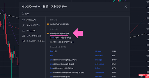 「Moving Average Simple」というのが出てくるので、それを選択します。