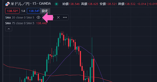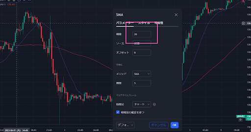 移動平均線を2本表示できたら、次は移動平均線の期間を設定します。