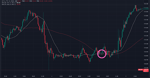 このルールを守っていると、クロスした時にはすでに大幅な下落や上昇をしてしまっている時にエントリーしてしまうのを防げます。