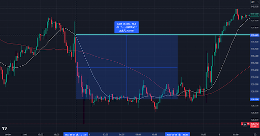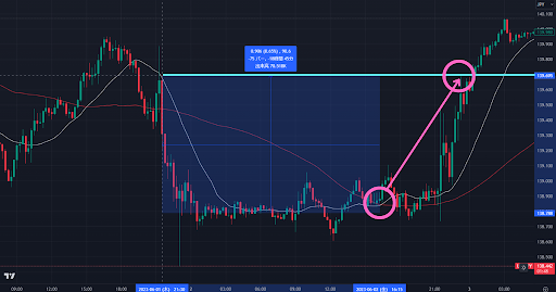 ということで、ここを利確ラインにして買いでエントリーします。