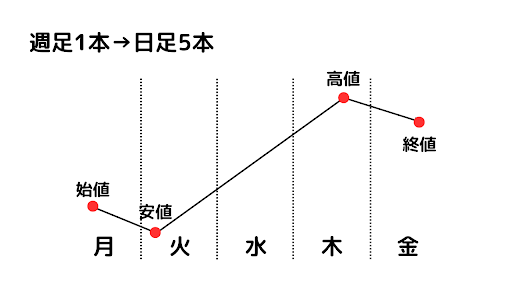 そして週足1本を日足5本分けて考えると