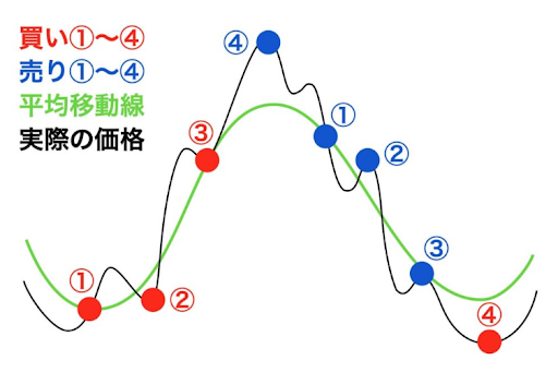 例えば「グランビルの法則」という、移動平均線を用いたテクニカル分析手法があります